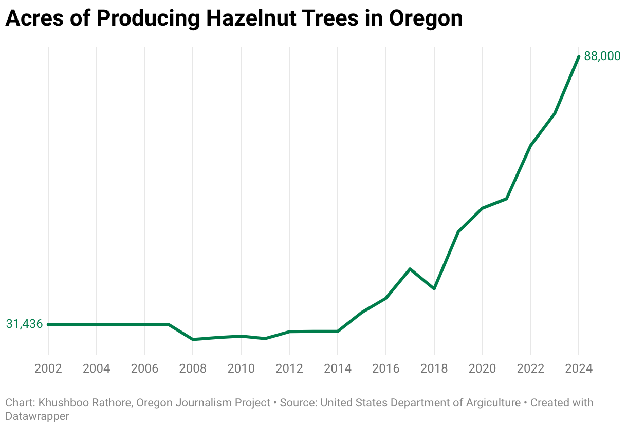 1/3/2026 - Although the total amount of cultivated farmland in Oregon is shrinking, filbert acreage is booming.