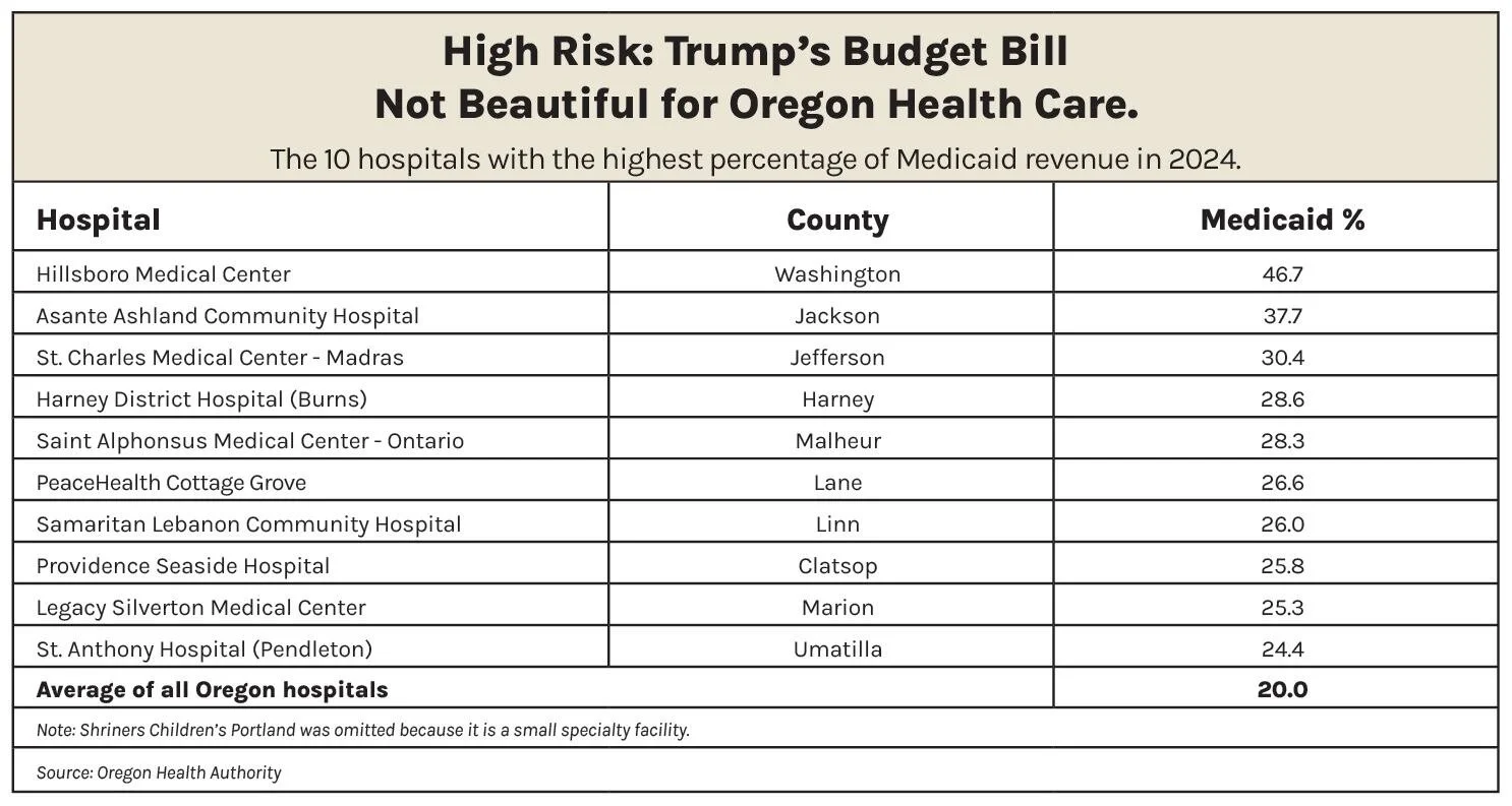 When President Donald Trump signed the “One Big Beautiful Bill” into law on July 4, every hospital CEO in Oregon got heartburn. That’s because the bill focused heavily on cuts to Medicaid, the health insurance program for low-income Americans called the Oregon Health Plan here.