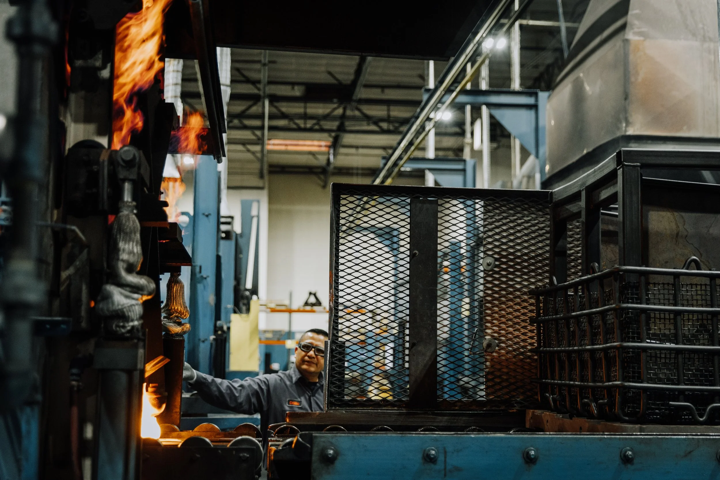 An employee at Stack Metallurgical Group in North Portland checks one of the company’s 70 furnaces. (Courtesy of Stack Metallurgical Group)